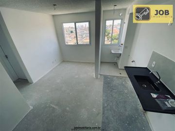 Apto lindo e moderno na Vila Ema de 38m2, com 2 dormitórios, Wc social, sala integrada com a cozinha americana, com gabinete e piso, sem vaga.