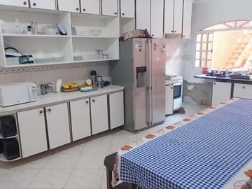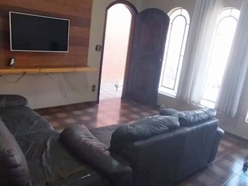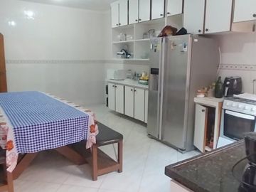 Casa térrea linda na Vila Scarpelli, Santo André, toda de laje, com 3 dormitórios 1 suíte (c/hidro), 2 Wc's social (c/ box de vidro e gabinete), sala ampla, cozinha c/ planejados, 1 salão de festa com cozinha, corredor lateral, lavanderia coberta, quintal c/ churrasqueira, sótão, salão de festa na parte de cima da casa 4x7 = 28m² , 5 vagas de garagem cobertas.