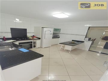 Sobrado principal: 03 dormitórios (sendo 01 planejado na parte frontal com ampla sacada), 03 banheiros (superior com hidromassagem e gabinete; inferior com box de vidro e gabinete), sala para dois ambientes com sanca e painel de TV, sala de jantar com três janelas, cozinha ampla com móveis planejados, lavanderia coberta, corredor lateral, quintal e 02 vagas de garagem cobertas com portão automático e trava magnética, garantindo mais segurança e praticidade.